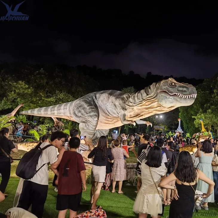 Dette er en 12-meter lang gigantisk Tyrannosaurus Rex-modell, og vi lager alt for hånd, så det tar 25-30 dager å lage en dinosaur. Denne Tyrannosaurus Rex bruker en bedre servomotordrift, slik at bevegelsen kan kontrolleres mer nøyaktig.