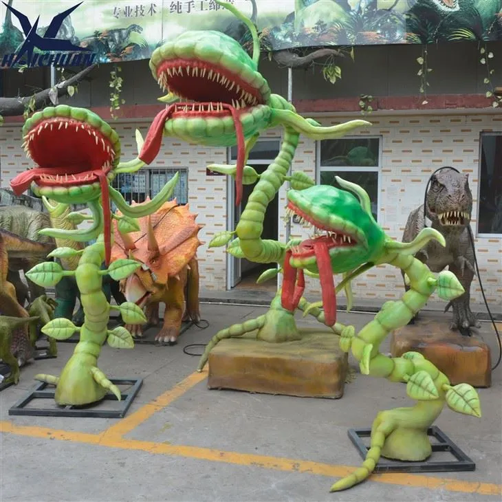 Denne animatroniske menneskeeterblomsten kan brukes til å dekorere parker, Halloween og andre utendørsscener. Åpning og lukking av munnen er akkompagnert av en skummel lyd, og imitasjonen av planteslim gir en skremmende visuell effekt. Vi kan tilpasse forskjellige kannibalblomster etter kundenes behov, bare fortell oss hva du synes.